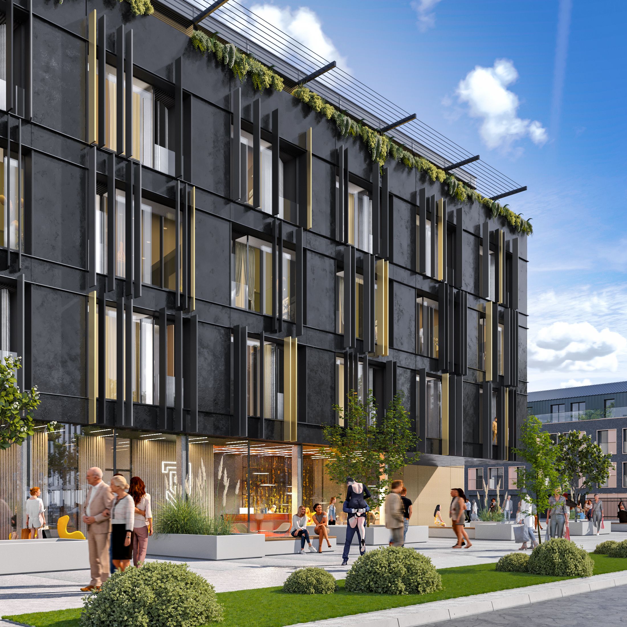 Biurowiec składa się z białej bryły, która dopełnia pierzeję zabudowy ulicy Warszawskiej w Pabianicach. Jego fasada posiada rytmicznie ułożone okna podkreślone grafitowymi wnękami z paneli hpl. Ostatnie piętro składa się z tarasu widokowego dopełnionego zielenią.