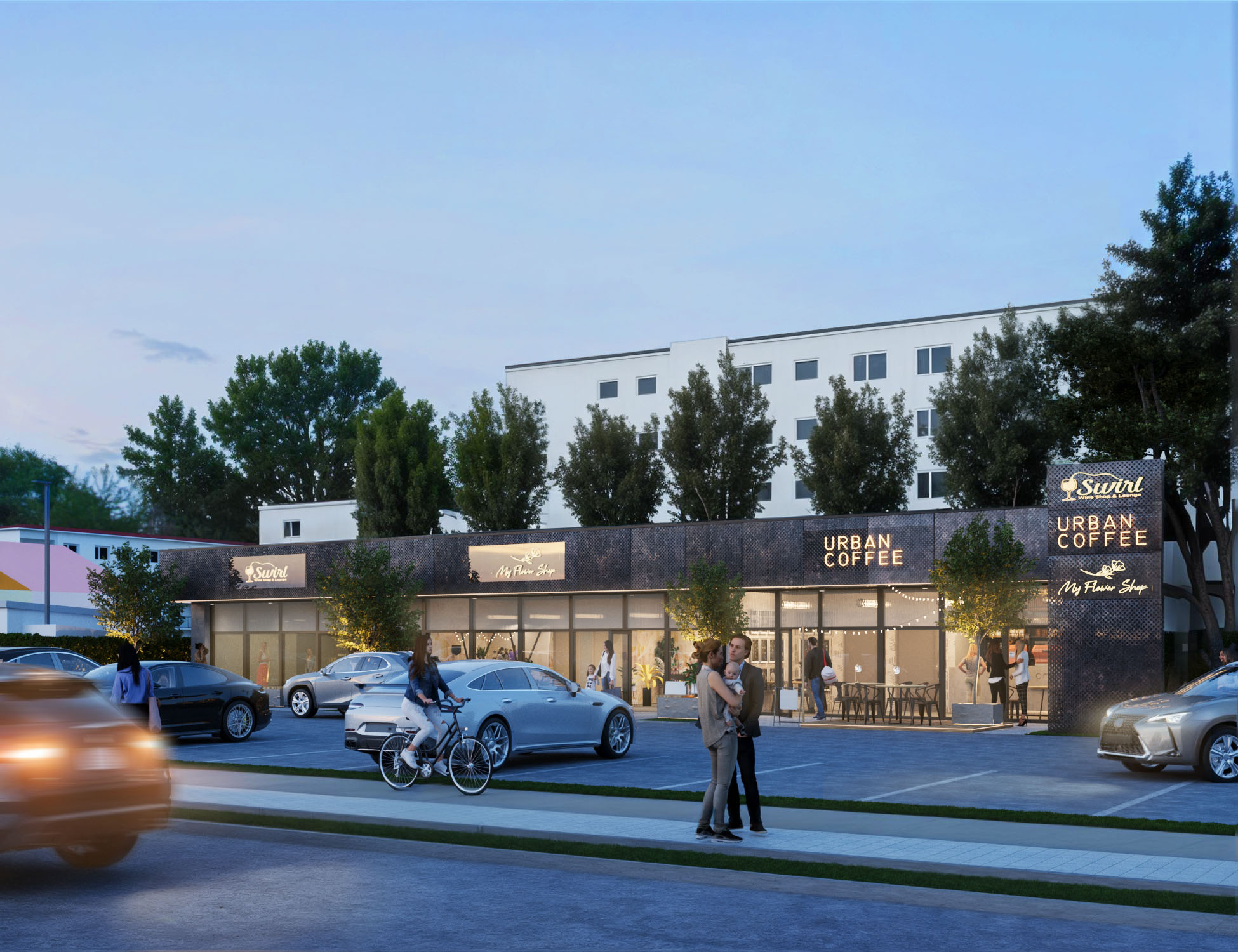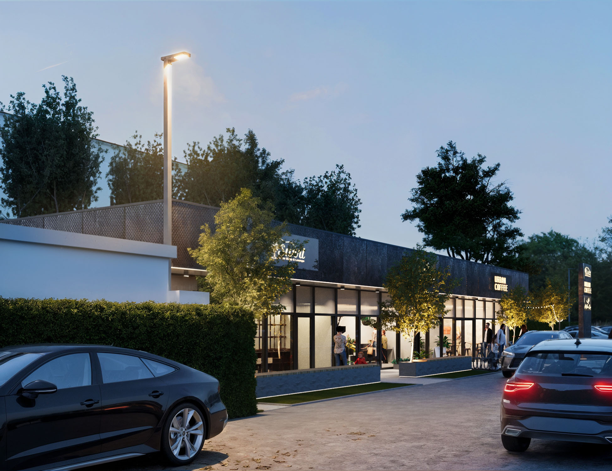 Pawilon handlowy w Pabianicach został zaprojektowany jako nowoczesna, jednokondygnacyjna zabudowa z dużymi przeszkleniami, które podkreślają lekkość obiektu. Elewację dodatkowo urozmaicają panele z perforowanej blachą w ciepłym miedzianym odcieniu. Budynek harmonijnie wpisuje się w otoczenie dzięki niskiej skali i zieleni komponującej się z przestrzenią miejską. Przestrzeń frontowa, zaakcentowana dodatkowo pylonem, pełni funkcję przyjaznej strefy pieszej sprzyjającej swobodnemu przepływowi użytkowników.
